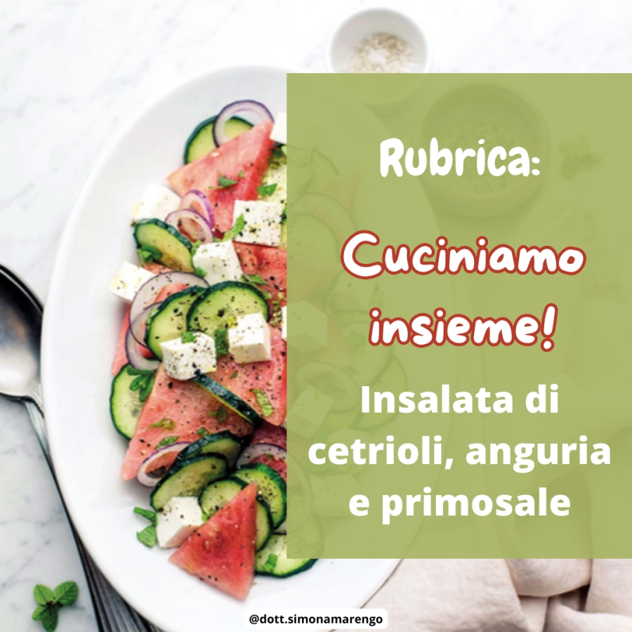 Procedimento: Taglia a rondelle sottili i cetrioli dopo averli lavati accuratamente. Taglia in triangolini l’anguria. Prendi il primosale e taglialo a cubetti. Opzionale, puoi tagliare 1 cipolla a rondelle sottili per dare più gusto. Unisci tutti gli ingredienti, condisci con olio, sale e pepe. Per completare il piatto puoi unire del riso basmati e creare un insalata di riso freddo.